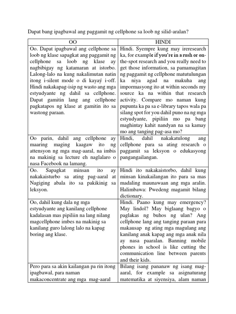 Dapat Bang Ipagbawal Ang Paggamit Ng Cellphone Sa Loob Ng Silid Pdf