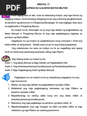 Batas Militar sa Pilipinas Napasailalim sa batas militar ang Pilipinas mula 1972 hanggang 1981 sa ilalim ng pamumuno ni Ferdinand Marcos sa pamamagitan ng Proklamasyon Blg. The NPA conflict has been there for the last four decades. Sa isang banda ipinagmamalaki ng aking mga kamag-anak na panahon ito na naging disiplinado ang mga Pilipino at nasupil ang pag-aaklas ng mga subersibong elemento ng lipunan.